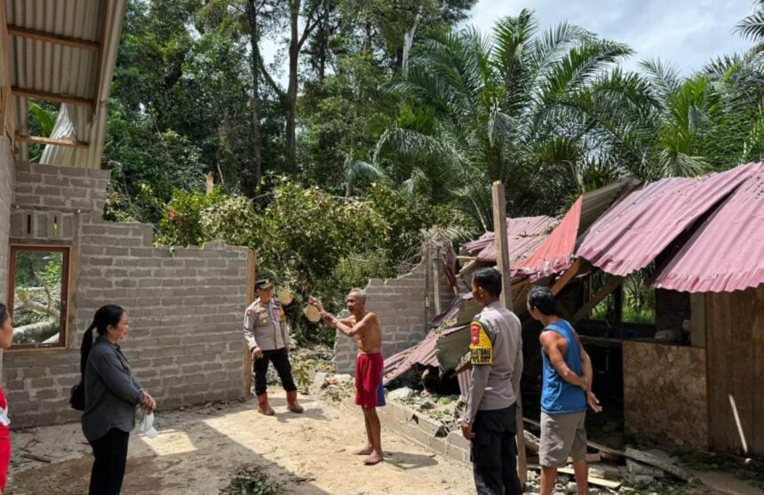 FOTO : Suasana di lokasi kejadian pasca diterjang angin puting beliung Tim liputan - radarkalbar.com SANGGAU - Hujan deras yang turun di Dusun Pulau Mpoh,…