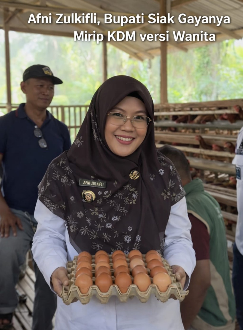 Namanya Dr. Afni Zulkifli S AP M Si. Bupati Siak ke-5 sejak dilantik 4 Juni 2025. Perempuan pertama di Negeri Istana. Umur 40 tahun, tapi energinya macam arus Sungai Siak pas banjir kiriman, deras, tak kenal rem, dan kalau ikut arusnya, bisa sampai ke hilir tanpa sadar.