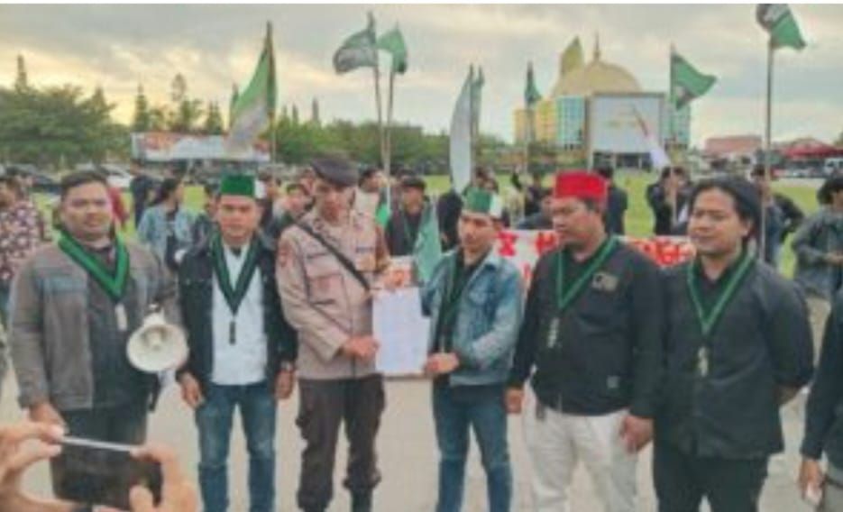 PONTIANAK – Puluhan mahasiswa dari Himpunan Mahasiswa Islam (HMI) se Kalimantan Barat menggelar aksi unjuk rasa, pada Jumat (3/10/2025) sore.