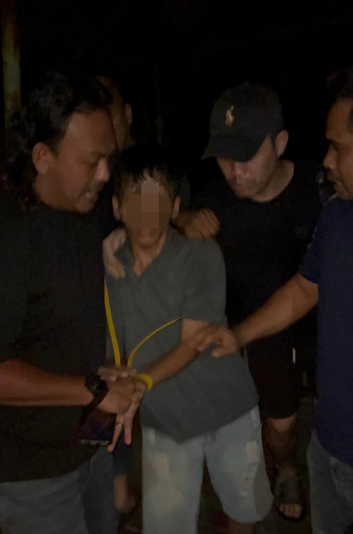 FOTO : Tersangka M saat diamankan tim Unit Jatanras Satreskrim Polres Landak [ ist ]
