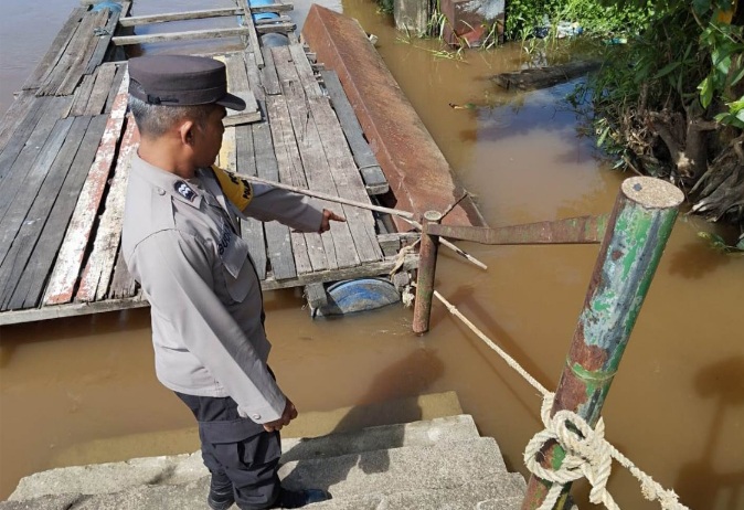 Waspadai Dampak Cuaca Ekstrem, Petugas Polsek Tayan Hilir Rutin Pantau Debit Sungai Kapuas