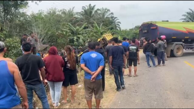 TAGGED:Desa PancarobaDump TrukJalan trans kalimantanLakalantasTruk tangki CPO