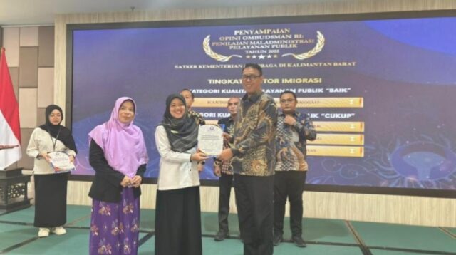 PONTIANAK – Kantor Imigrasi Kelas II TPI Sanggau sukses menorehkan prestasi gemilang dengan meraih predikat Kategori Kualitas Pelayanan Publik “Baik” dalam penilaian kepatuhan standar pelayanan publik tahun 2025 oleh Ombudsman Republik Indonesia.