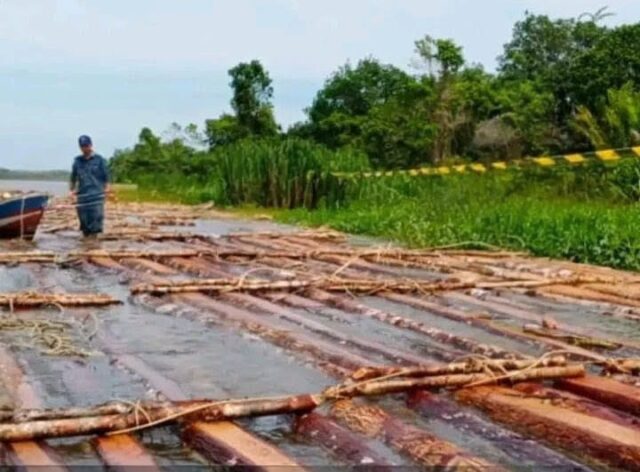 Kayu-kayu tersebut diketahui diangkut menggunakan dua unit kapal kelotok dan diarahkan ke industri pengolahan di Desa Negeri Baru.