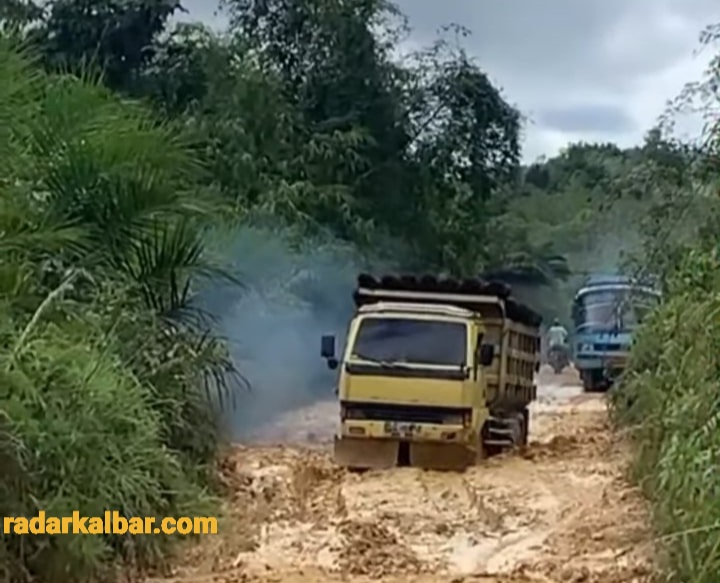 Bahkan, beberapa foto dan video yang beredar memperlihatkan truk bermuatan berat terjebak di lumpur sedalam lutut orang dewasa, menyebabkan arus lalu lintas terhenti dan berdampak langsung pada roda perekonomian warga.