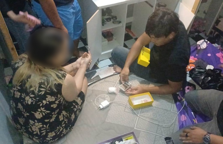 Perangkat wilayah dan warga sekitar sebagai saksi, penggeledahan kemudian dilakukan. Pada pukul 22.00 WIB, petugas menemukan sebuah kotak hitam di bawah laci kamar yang berisi dua plastik besar berisi 25 butir pil ekstasi serta tiga plastik kecil berisi sabu.