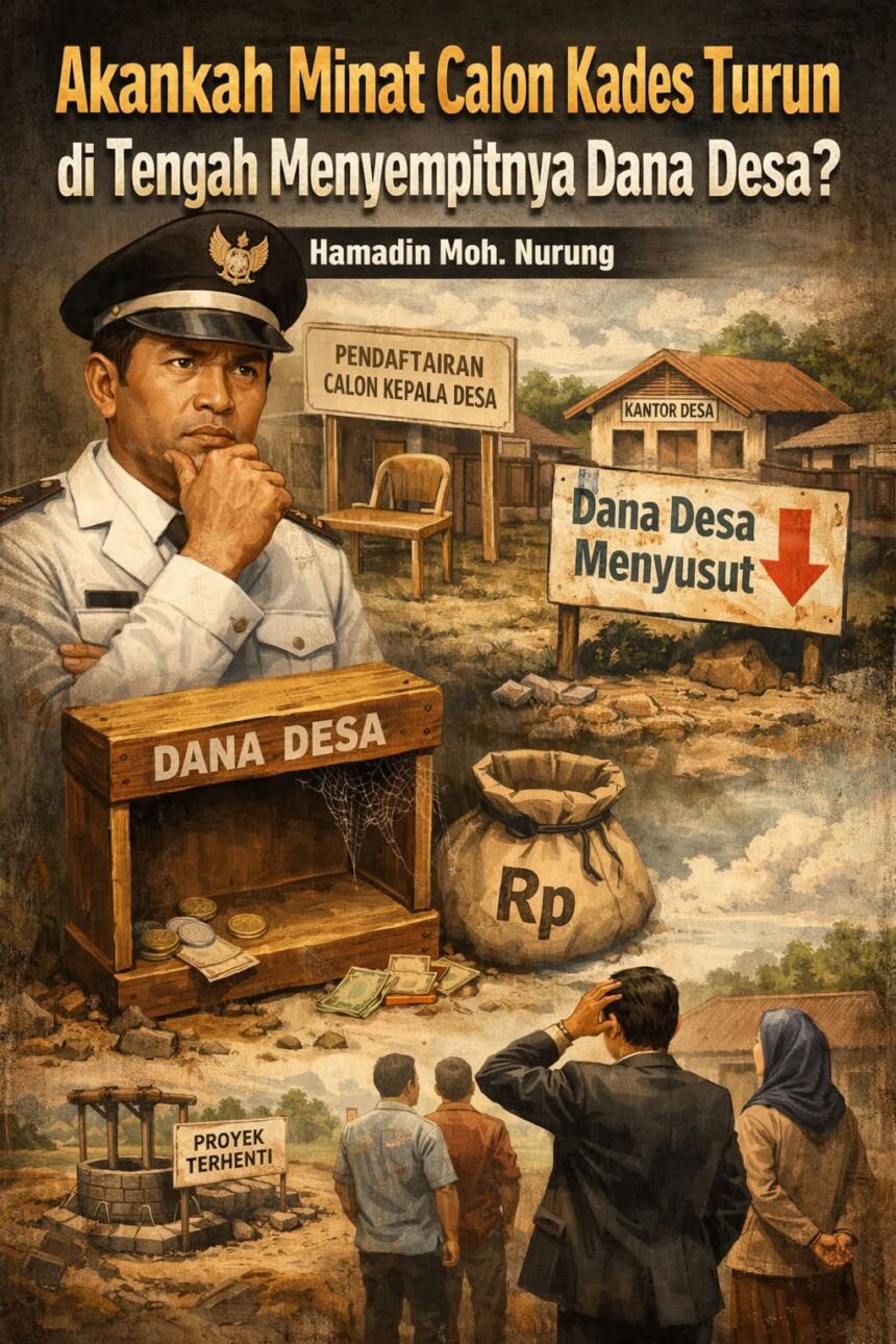 KETIKA minat calon kepala desa diprediksi turun akibat menyempitnya dana desa yang dikelola oleh pemerintah desa sebagai konsekuensi kebijakan pemerintah pusat yang mengalihkan sebagian besar penggunaannya untuk Koperasi Desa Merah Putih.