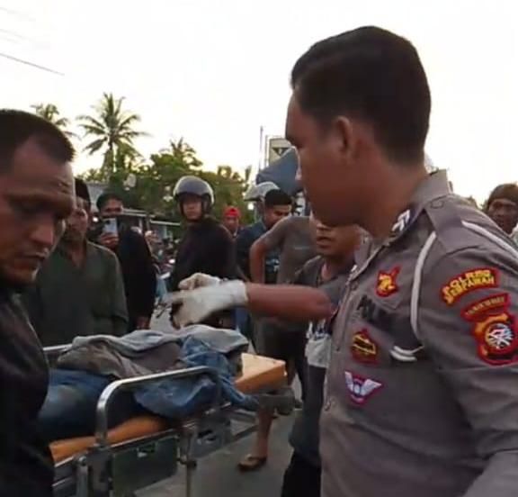 Kepanikan segera menjalar. Warga bergegas menepi dan menutupi tubuh korban, sementara arus lalu lintas langsung macet.