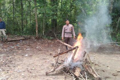 Respon Keluhan Warga, Tim Polsek Belitang Hilir Bongkar Arena Sabung Ayam di Desa Entabuk