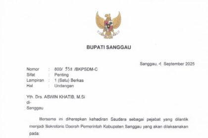 FOTO : Surat undangan ditujukan kepada Aswin Khatib untuk dilantik sebagai Sekda…