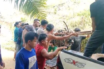 FOTO : Saat evakuasi mesin helikopter dari lokasi kejadian Inti Berita :…