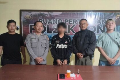 FOTO : Tersangka R (tengah) yang diamankan tim Polsek Bonti Tim liputan…