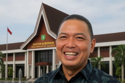 FOTO : Ria Norsan berlatar belakang bangunan Kantor Gubernur Kalimantan Barat […