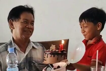 FOTO : Pak Herman saat menerima kue ulang tahun dari cucunya Juna…