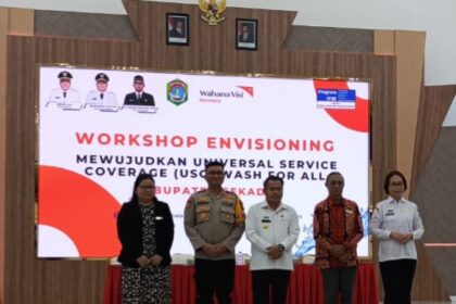 FOTO : Manajer CSR mewakili manajemen PT AA Sekadau, Winesis Geger saat…