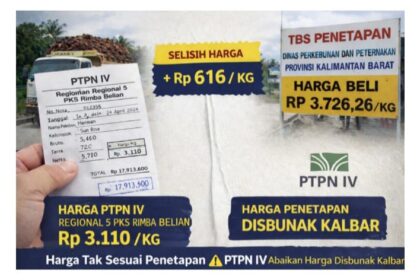 Selisih Harga Beli TBS Capai Rp 600, PKS Rimba Belian Abaikan Ketetapan Disbunak?