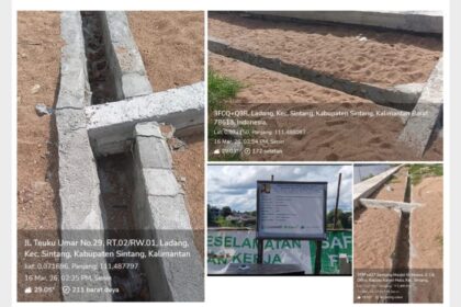 Anggaran Fantastis Hasil Minimalis…!! Proyek Penguatan Tebing Kampung Ladang Sintang Sudah Didera Keretakan