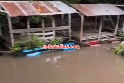 FOTO : kondisi air Sungai Sekayuk, Sosok berwarna pekat, mengalir melintas keramba…