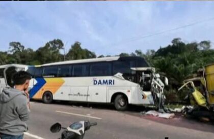 Tabrakan bus Damri Vs Truk