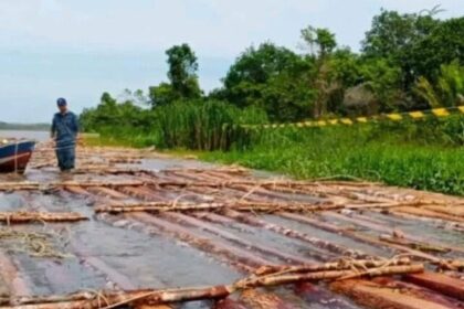 FOTO : rakit kayu log yang diamankan tim Gakkum Kalbar ( red)…
