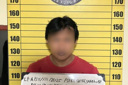 FOTO : Tersangka AO yang diamankan tim Labubu Polres Kubu Raya Tim…